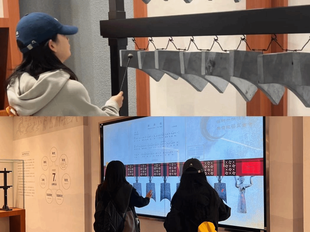 编钟“一钟双音”,是两种频率音,也是古今文化双音。通过这次实践活动,同学们对于中华优秀传统文化的传承与创新,心中也有了新“乐谱”。