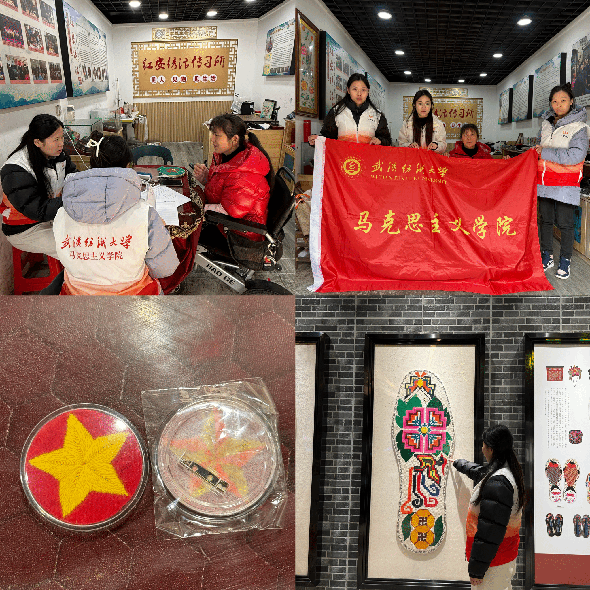 1月中旬以来,武汉纺织大学马克思主义学院“初心”实践团走进红安县七里坪镇红安绣活传习所,开展非物质文化遗产传承调研活动,与省级非遗传承人席和玉老师面对面交流,近距离感受非遗技艺的魅力与匠人的坚守。